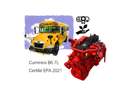 Drummondville, 25 mars 2021 - Girardin présente le nouveau moteur Cummins 6.7L certifié EPA 2021 dont sera équipé les autobus scolaires Blue Bird 2023.